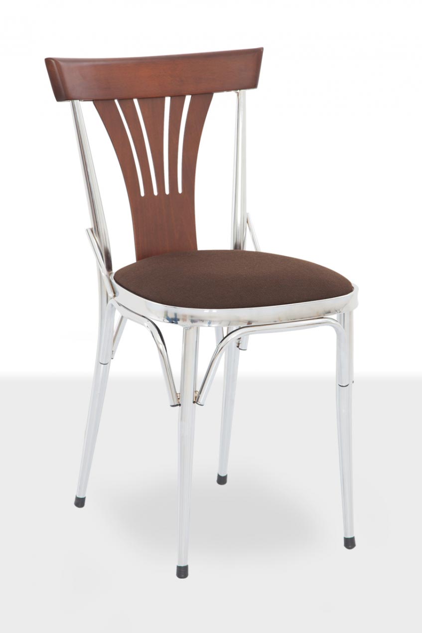 İskelet 28 x 1.2 mm boruÜzeri krom nikelaj kaplı veya boyalı Sırt ahşap, papelOturumderi döşeme veya kontraÜzeri istenilen renk ve desenlerde üretilebilir,Ayak cilası, kumaş ve suni deri rengi değiştirilebilir En: 39cm